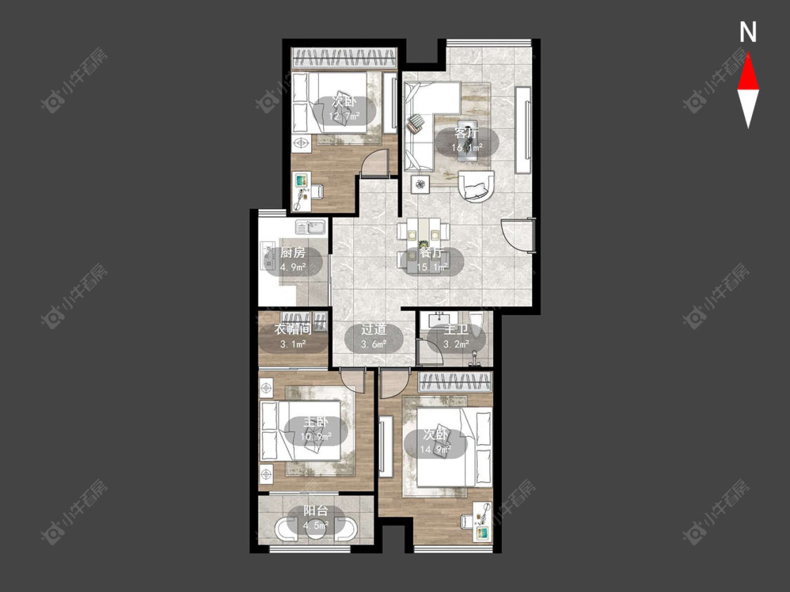 3室2厅2卫 | 128.52㎡ | 南