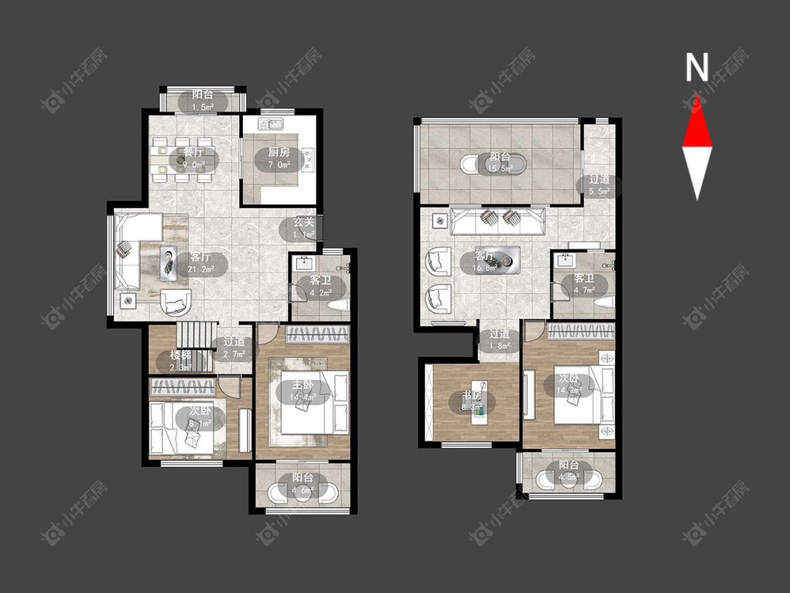 4室3厅2卫 | 134.66㎡ | 南