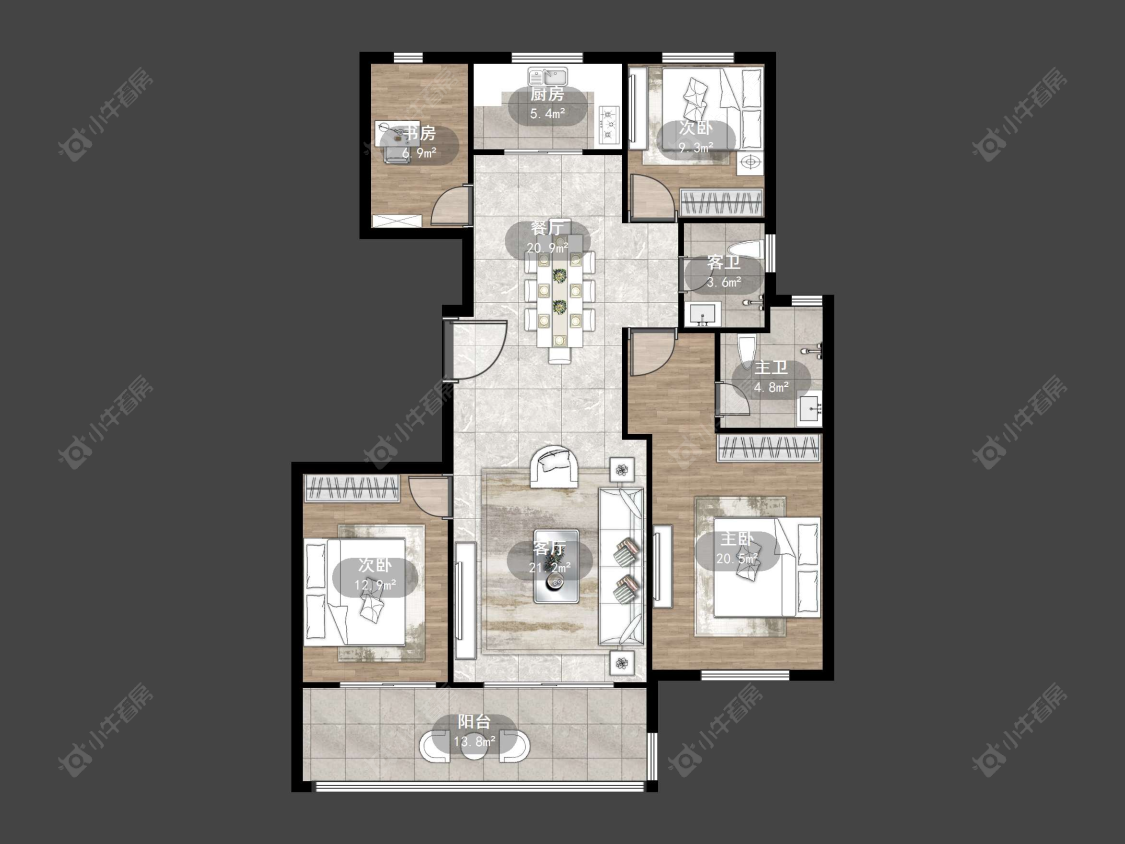 4室2厅2卫 | 132.8㎡ | 南