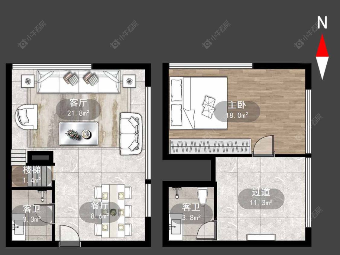 1室1厅2卫 | 52.13㎡ | 北