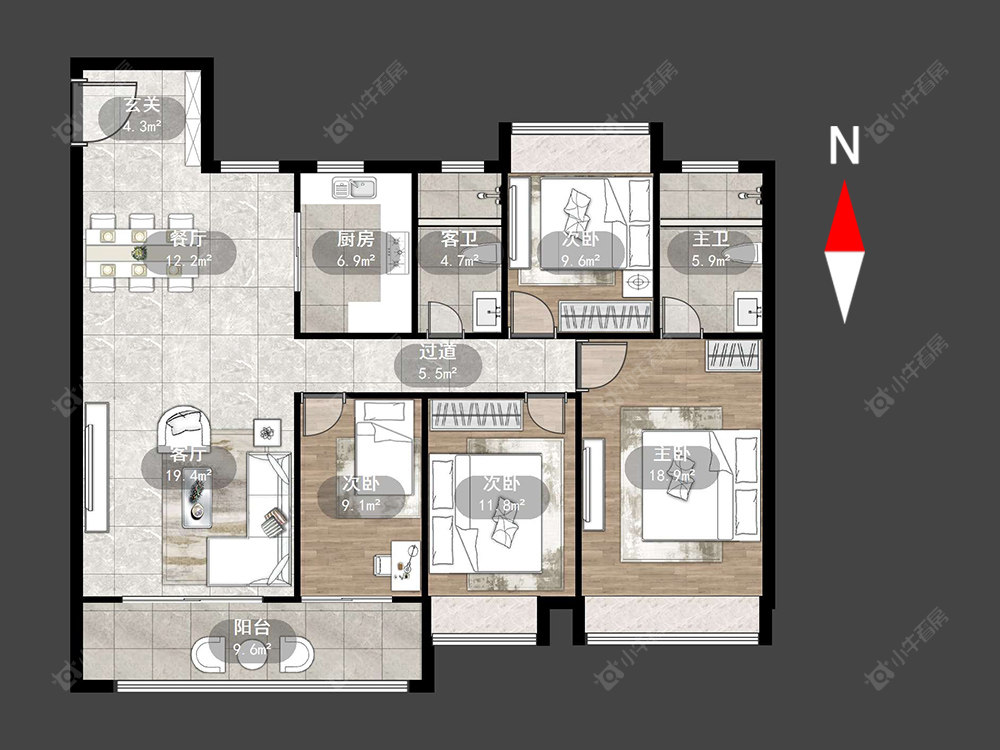 4室2厅2卫 | 138.93㎡ | 南