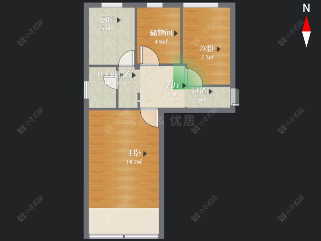 2室2厅1卫 | 46.98㎡ | 南