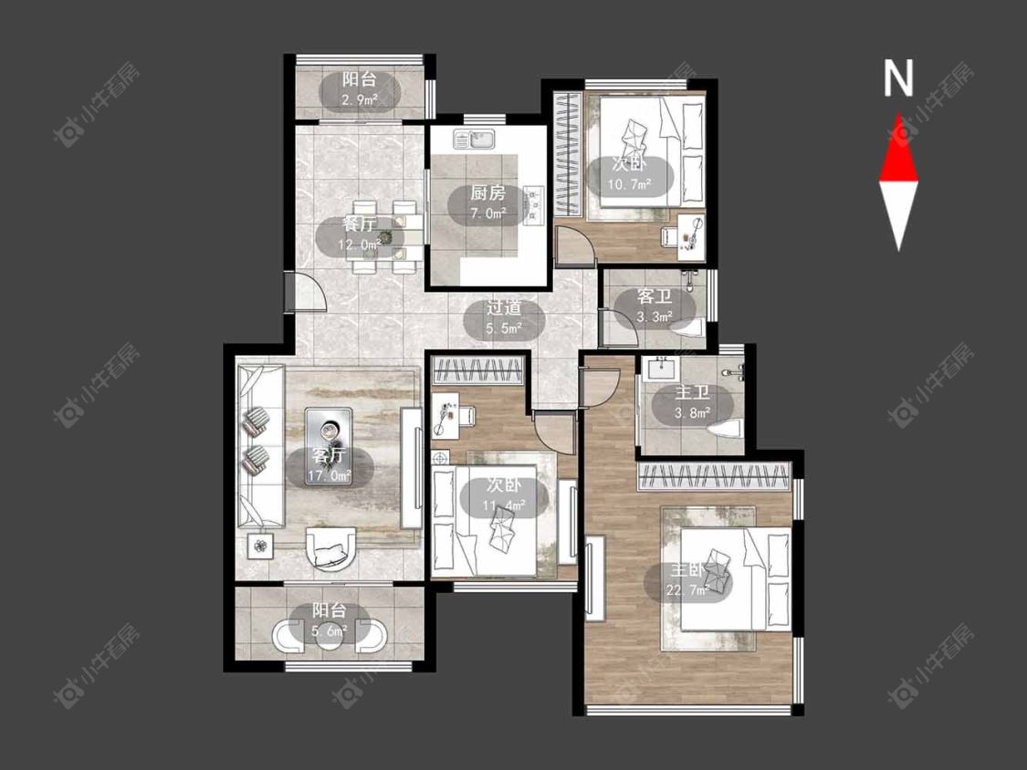 3室2厅2卫 | 130.71㎡ | 南
