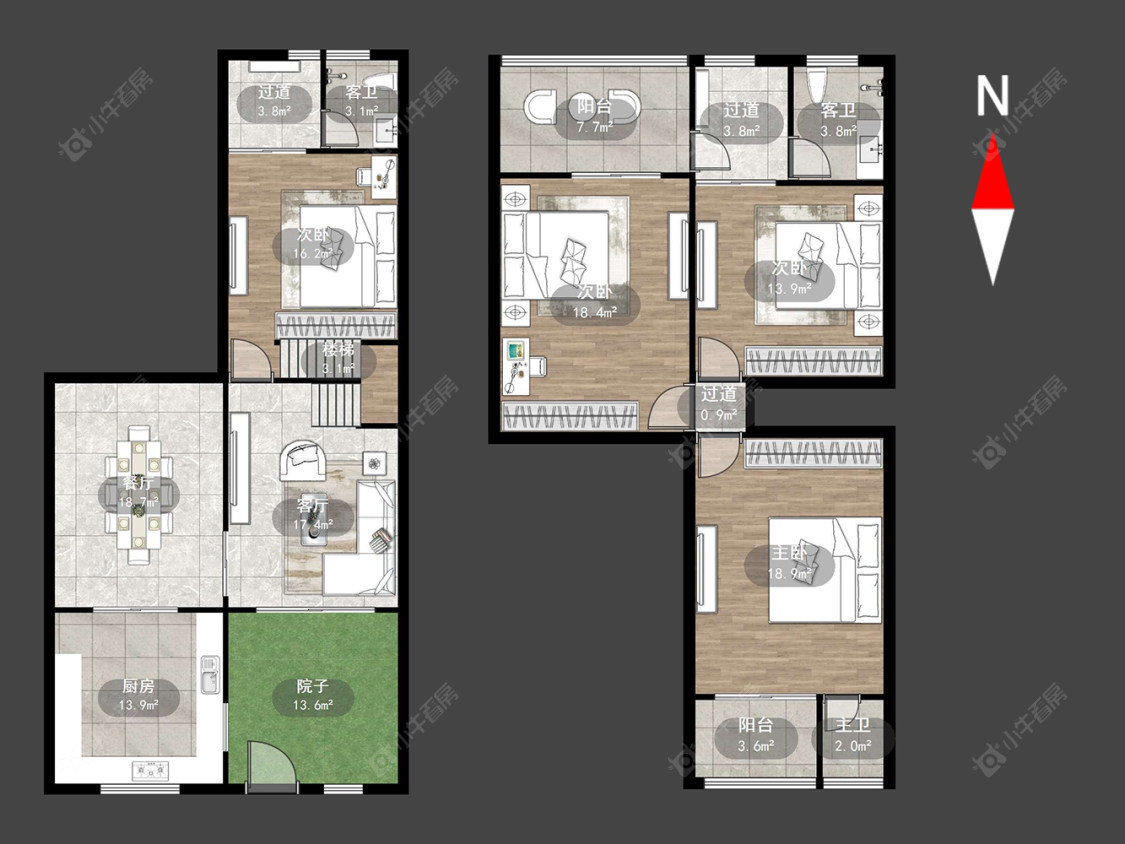 4室3厅4卫 | 173.69㎡ | 南