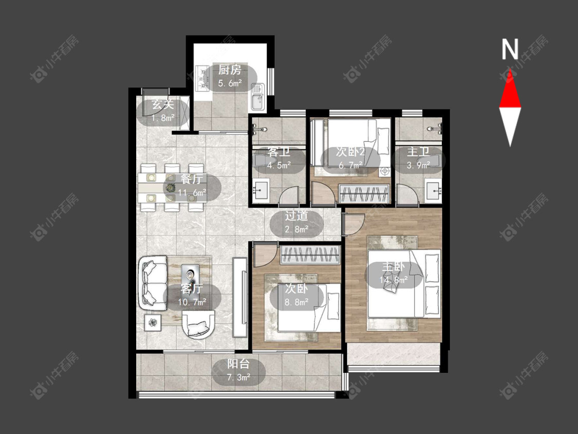 3室2厅2卫 | 109.28㎡ | 南