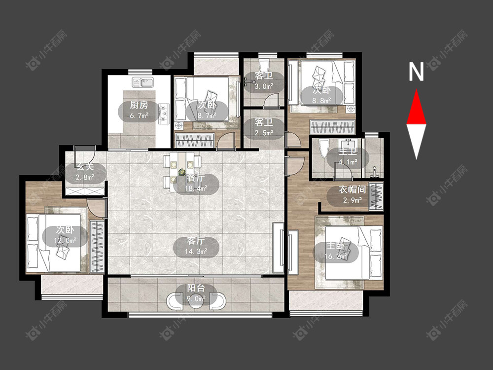 4室2厅2卫 | 140.52㎡ | 南