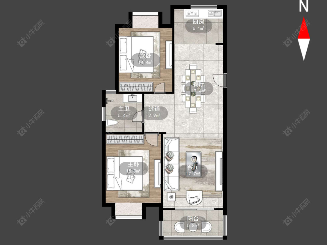 2室2厅1卫 | 100.43㎡ | 南