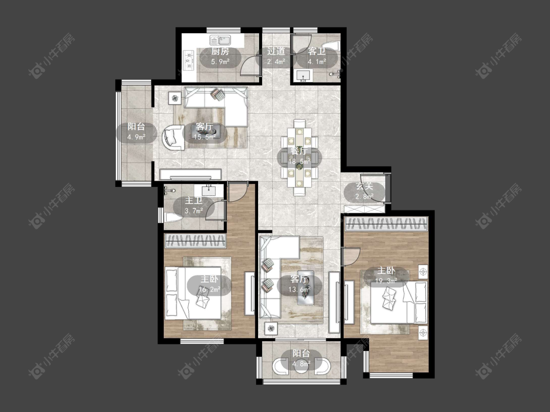 3室2厅 | 132.45㎡ | 南