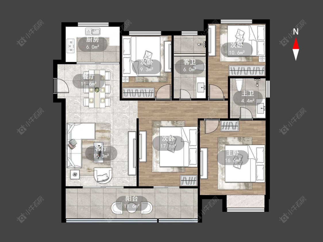 4室2厅2卫 | 143.15㎡ | 南