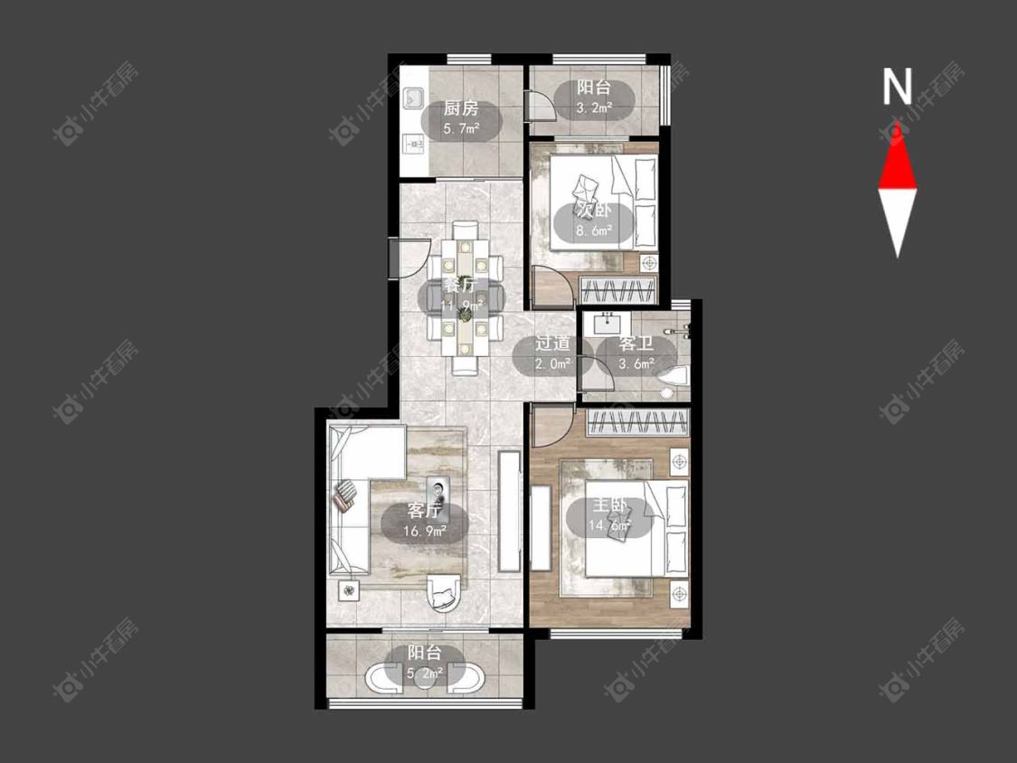 3室2厅2卫 | 131.68㎡ | 南