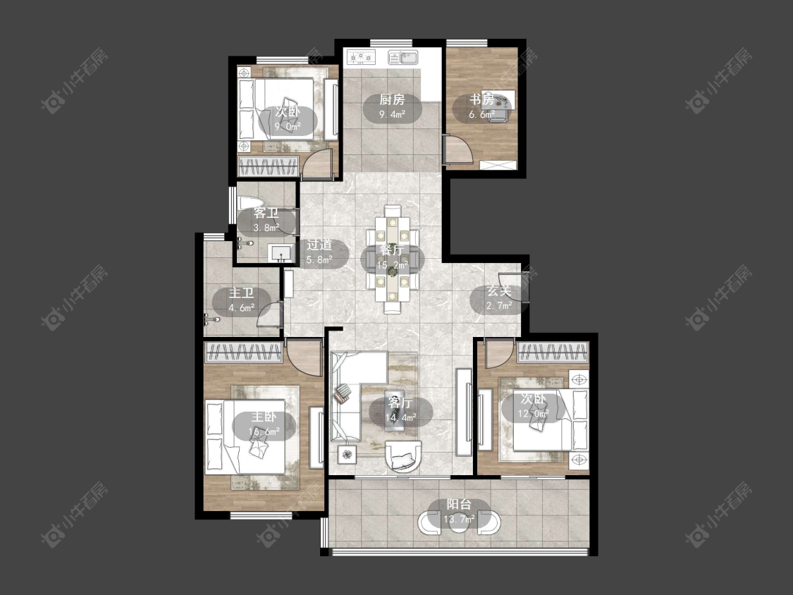 4室2厅2卫 | 152.49㎡ | 南