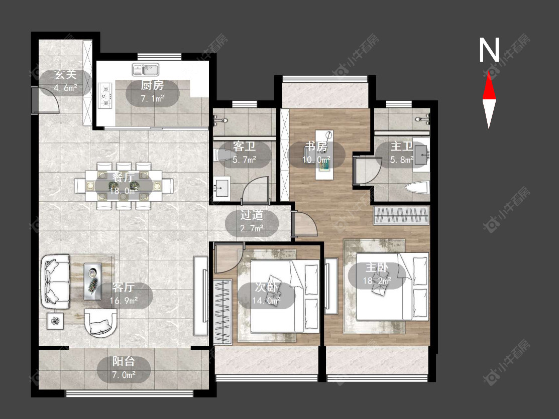 3室2厅2卫 | 134.7㎡ | 南