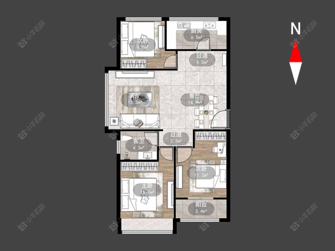 4室2厅2卫 | 161.39㎡ | 南