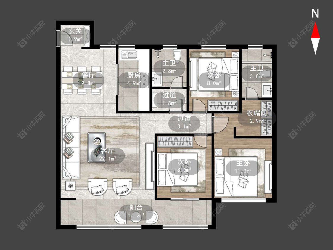 3室2厅2卫 | 126.37㎡ | 南