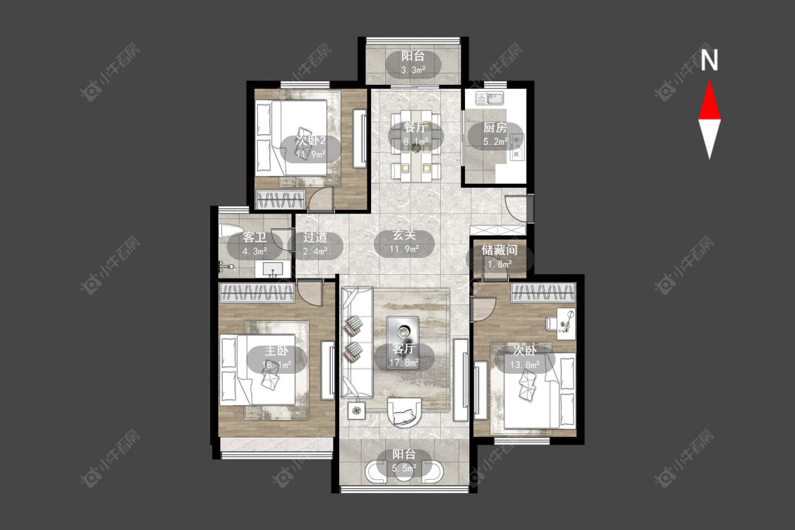 3室2厅1卫 | 118㎡ | 南
