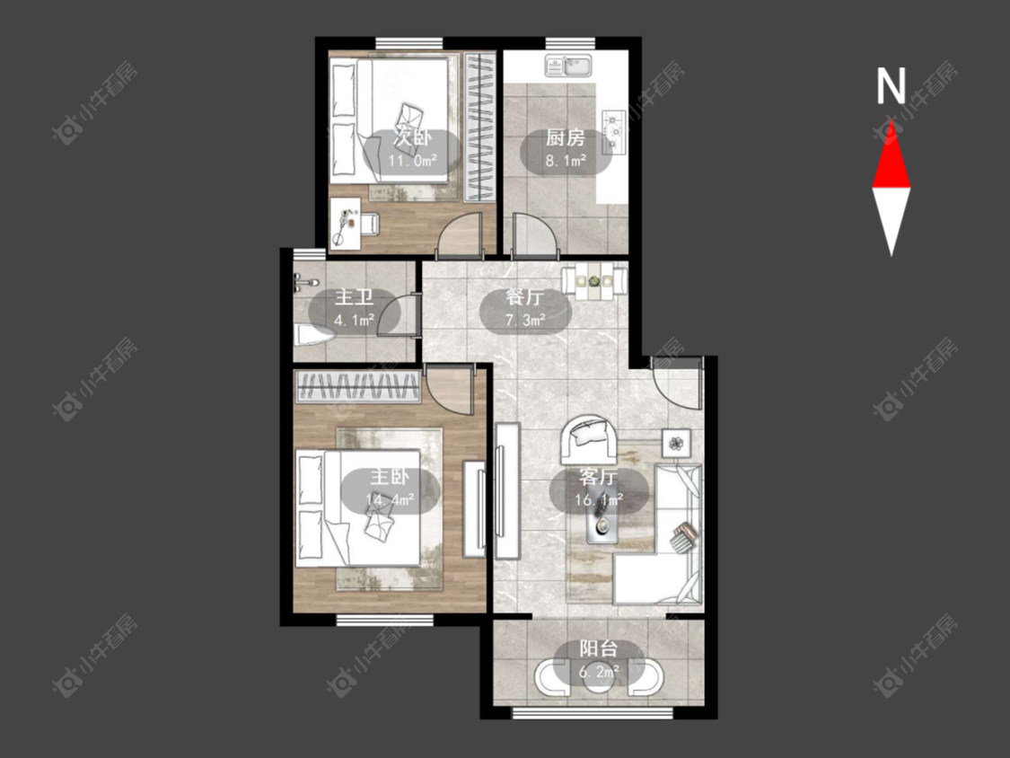 2室2厅1卫 | 80㎡ | 南