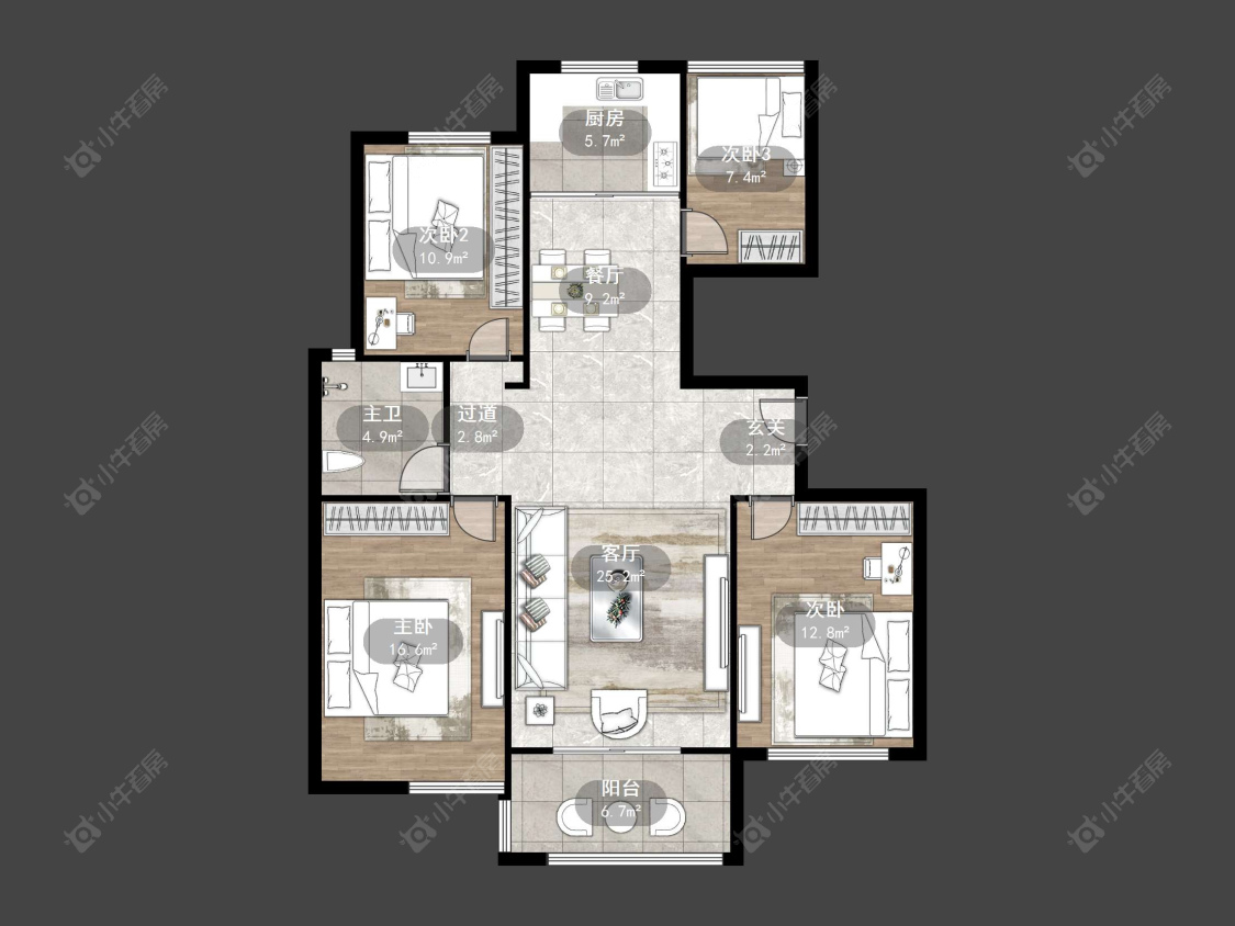 4室2厅2卫 | 124㎡ | 南