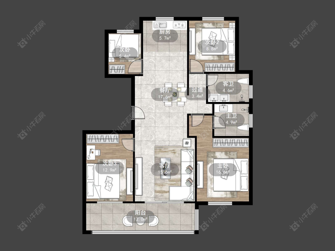 3室2厅2卫 | 120㎡ | 南