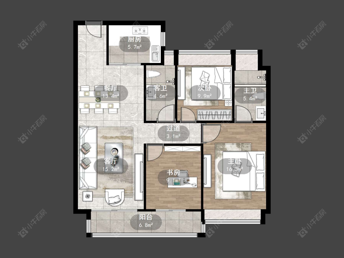 3室2厅2卫 | 112㎡ | 南