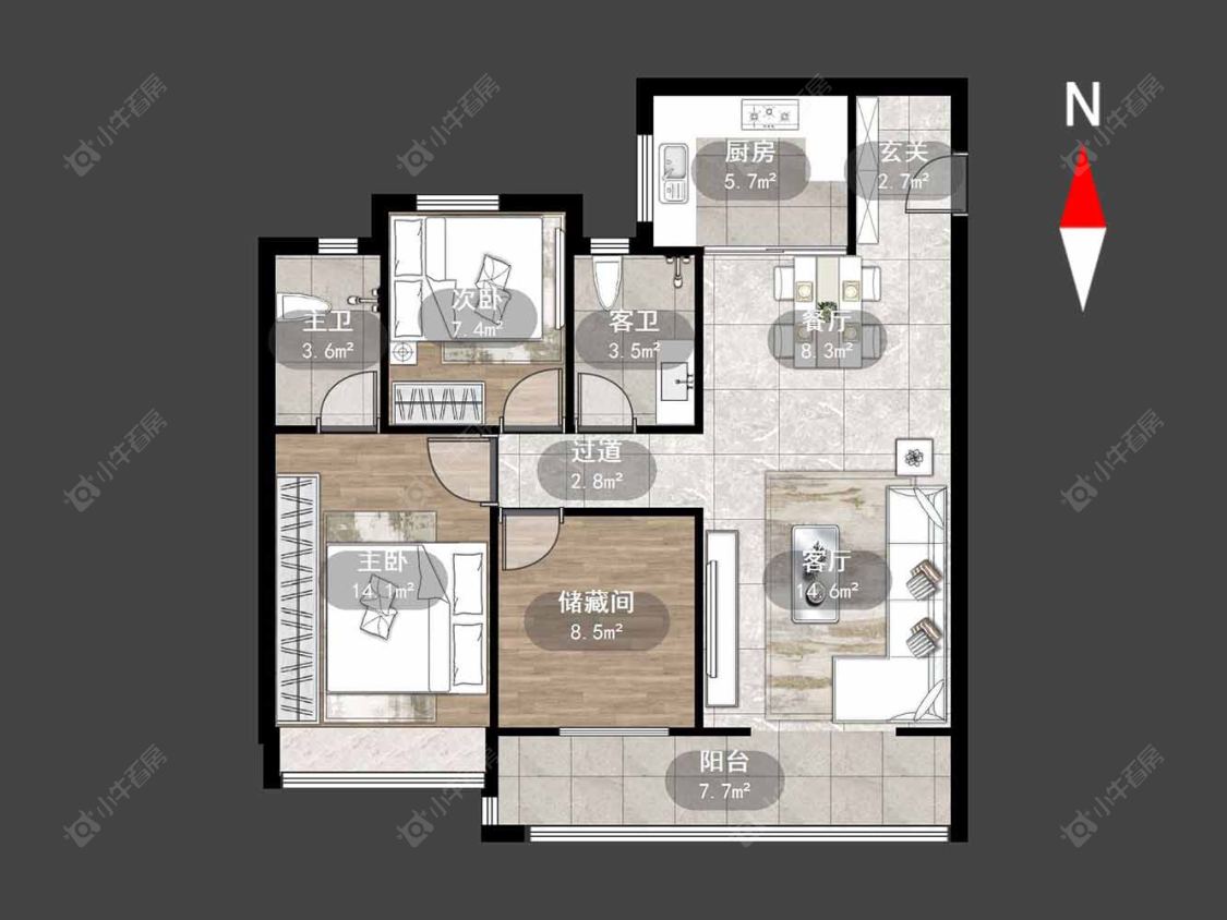 3室2厅2卫 | 106.28㎡ | 南