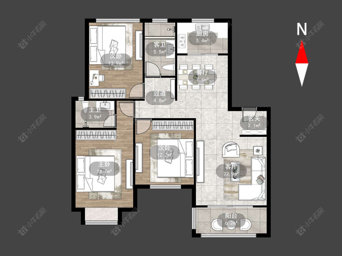 3室2厅2卫 | 123.88㎡ | 南