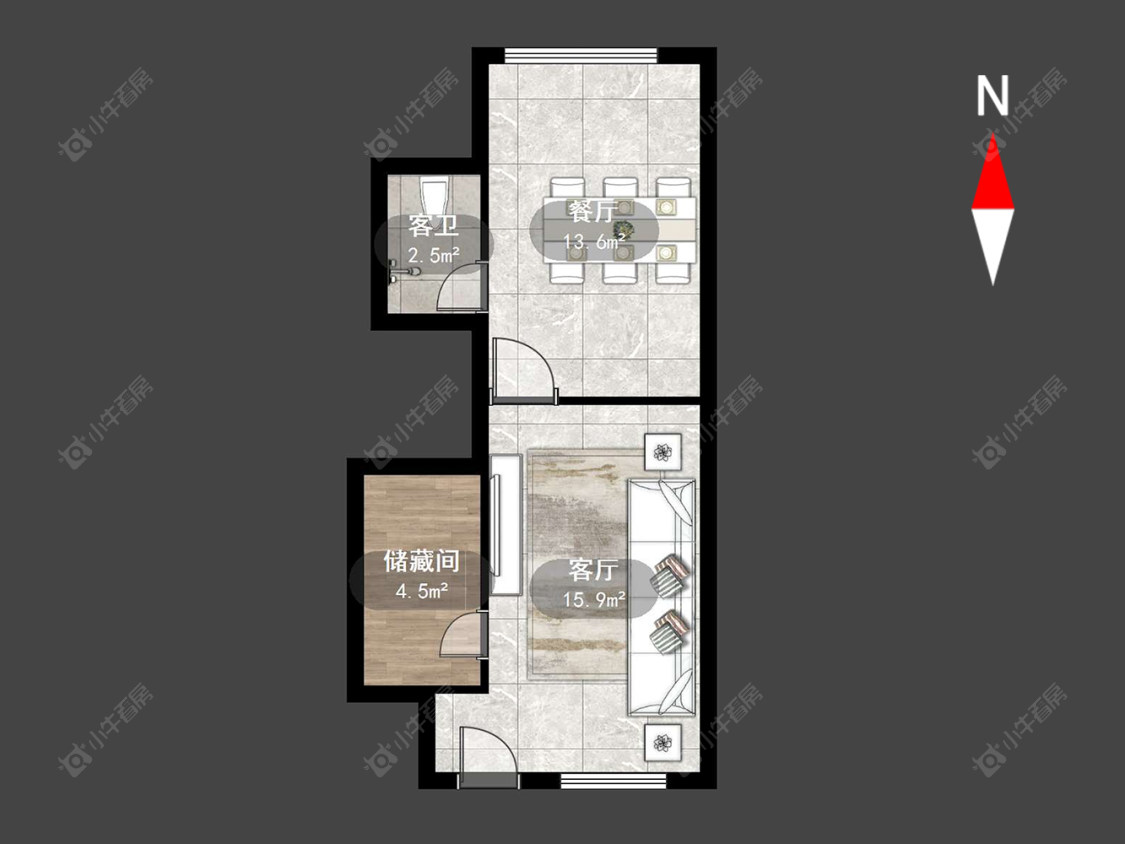 1室1厅1卫 | 42.53㎡ | 南