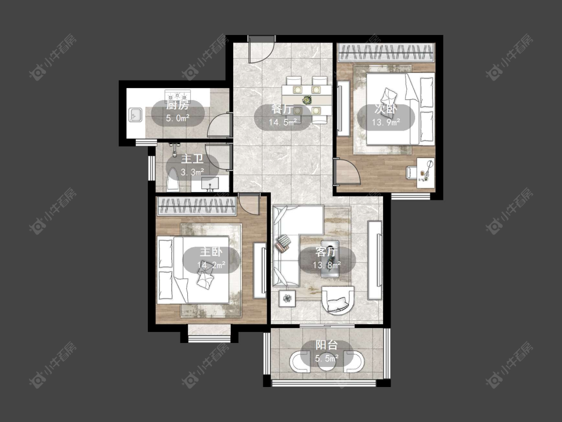 3室2厅2卫 | 94.54㎡ | 南