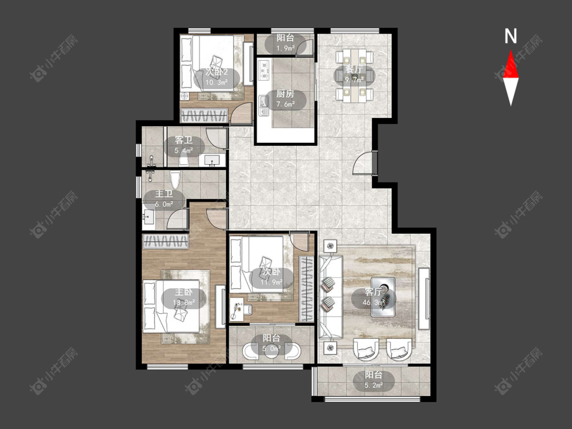 3室2厅2卫 | 123.99㎡ | 南